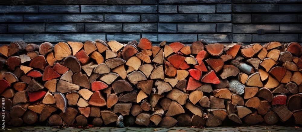A colorful image showing split and stacked oak firewood placed neatly ...