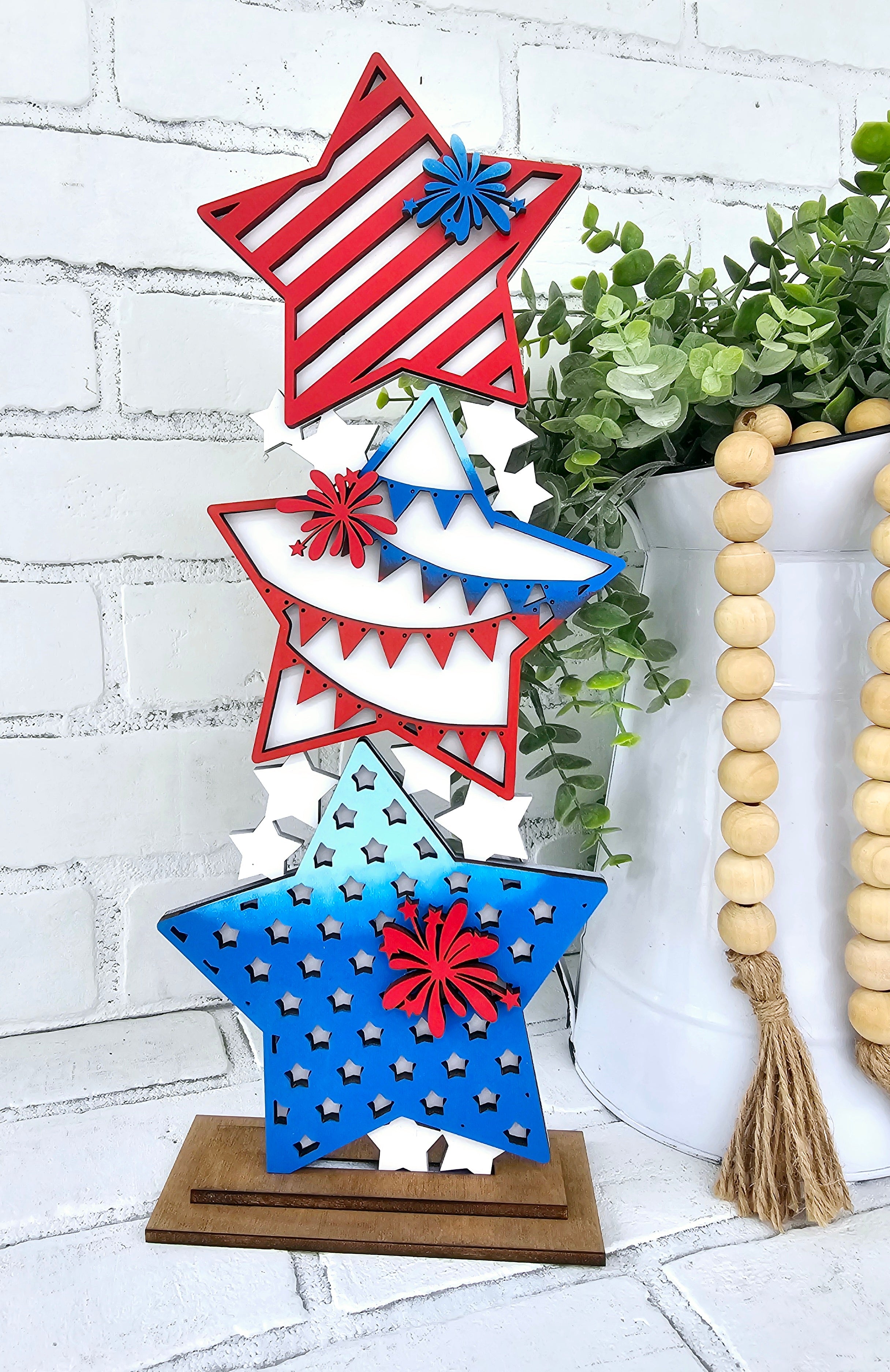 Freestanding Stacked Patriotic Stars-wholesale – Teal Moon Creations