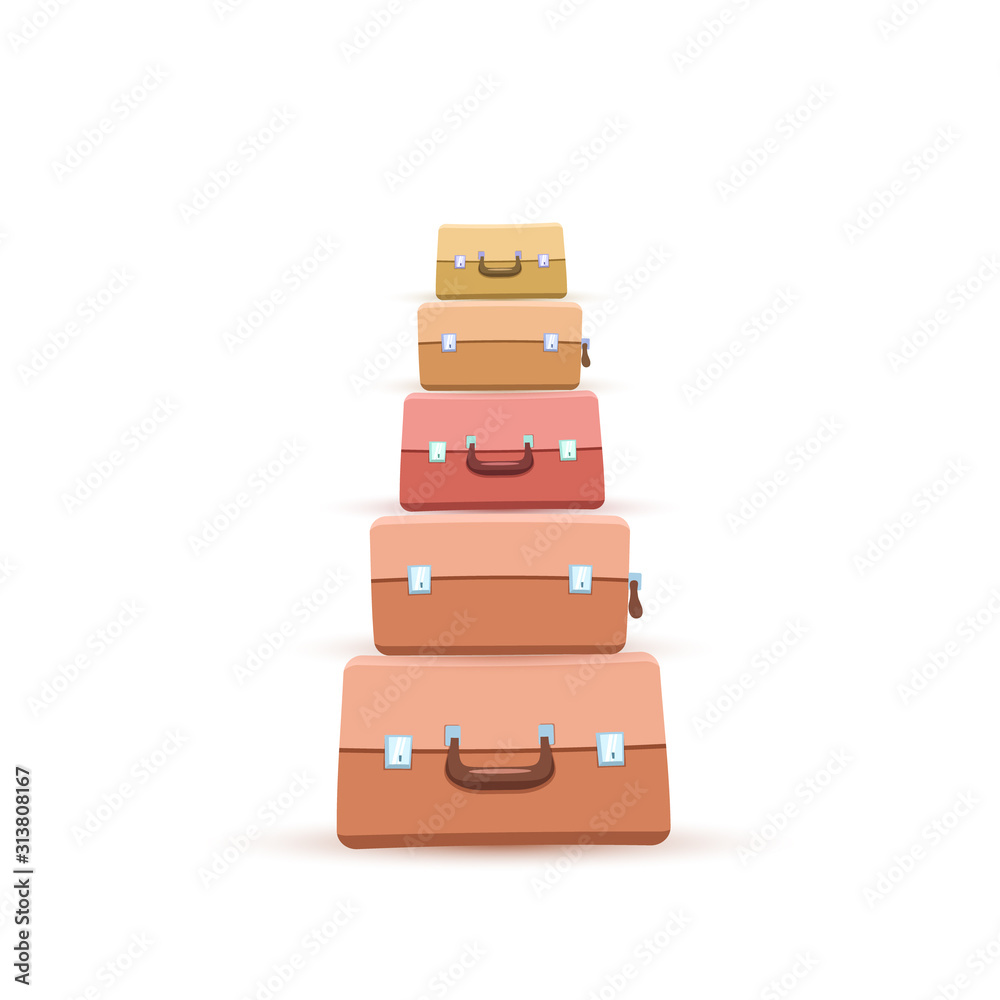 Classic retro travel suitcases stacked on top of each other. Cartoon ...