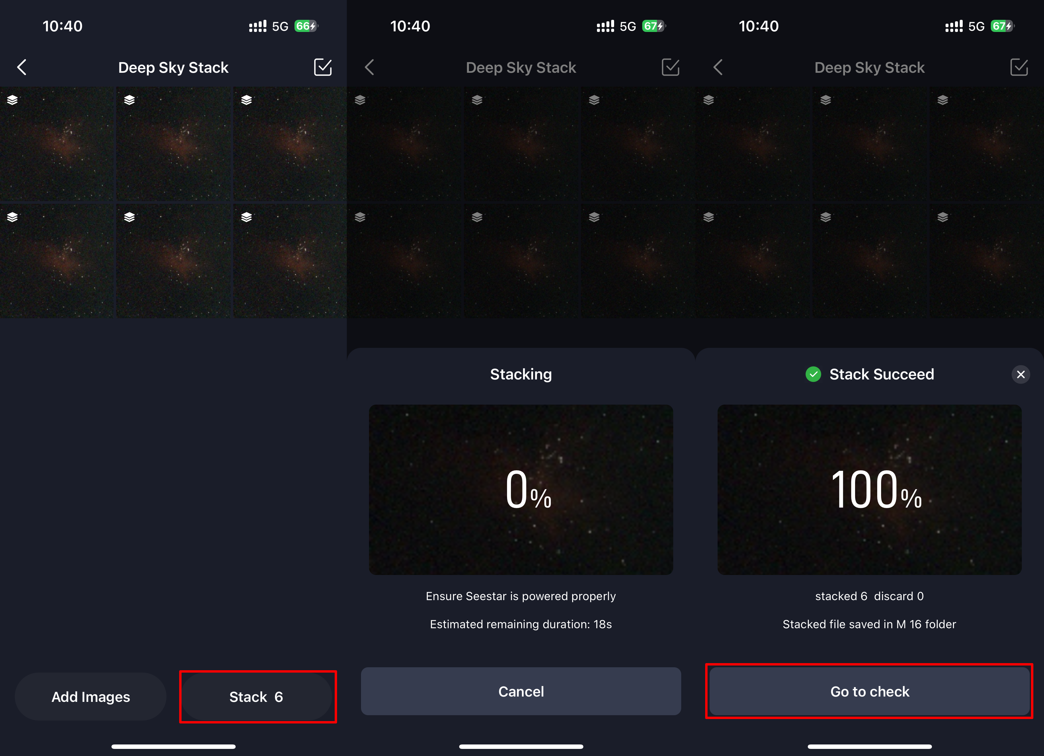 If stacking fails, the last selected image will still be displayed. You ...
