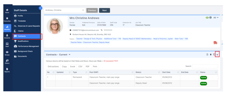 How To Add Staff Contract information – Bromcom – Documentation Centre