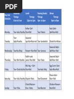 Blue Company Corporate Staff Canteen One Week Working Meal Menu Table ...