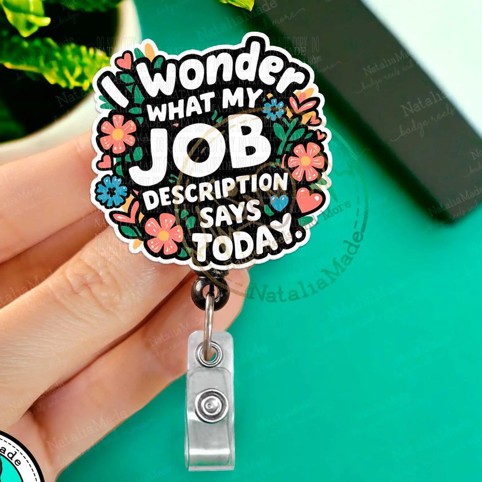 Funny Sarcastic Badge Reel- I Wonder What My Job Description Says Today ...