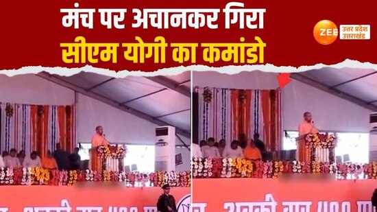 Commando standing behind cm yogi on stage gasped and fell down in ...