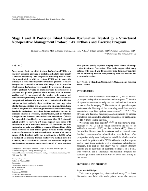 (PDF) Stage I and II posterior tibial tendon dysfunction treated by a ...