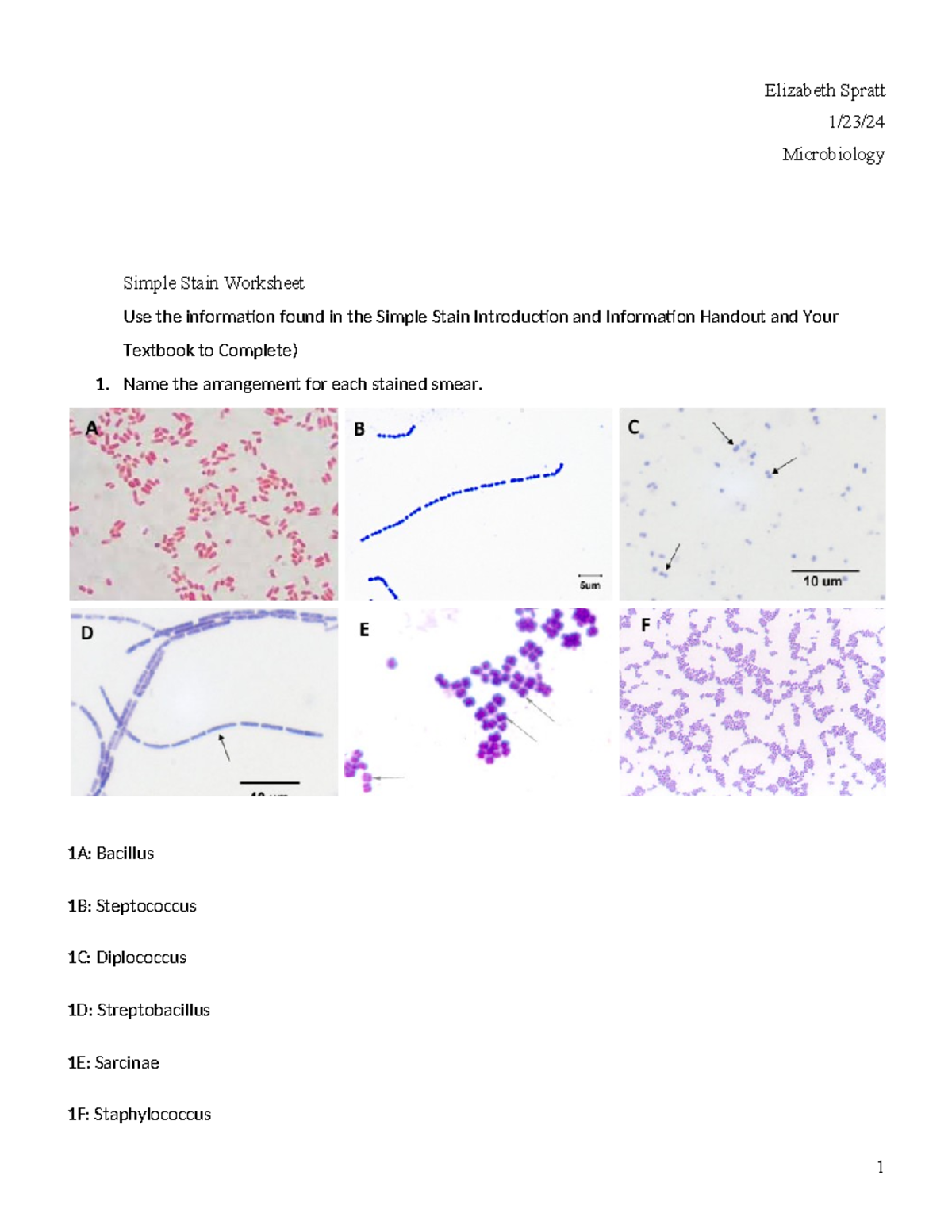 Lab Simple Stain Analysis - Elizabeth Spratt 1/23/ Microbiology Simple ...