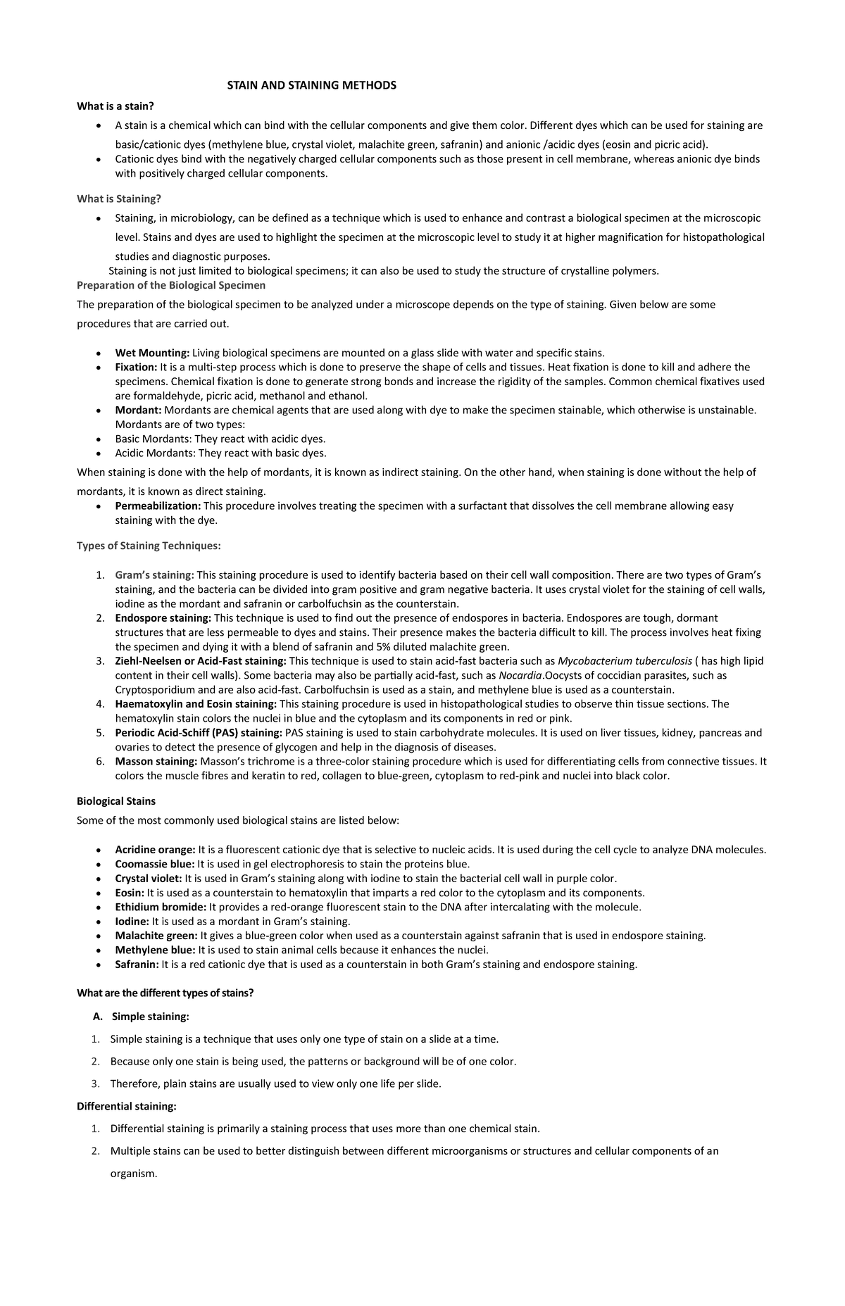 Lesson 4: Stain and Staining Methods in Microbiology - Studocu
