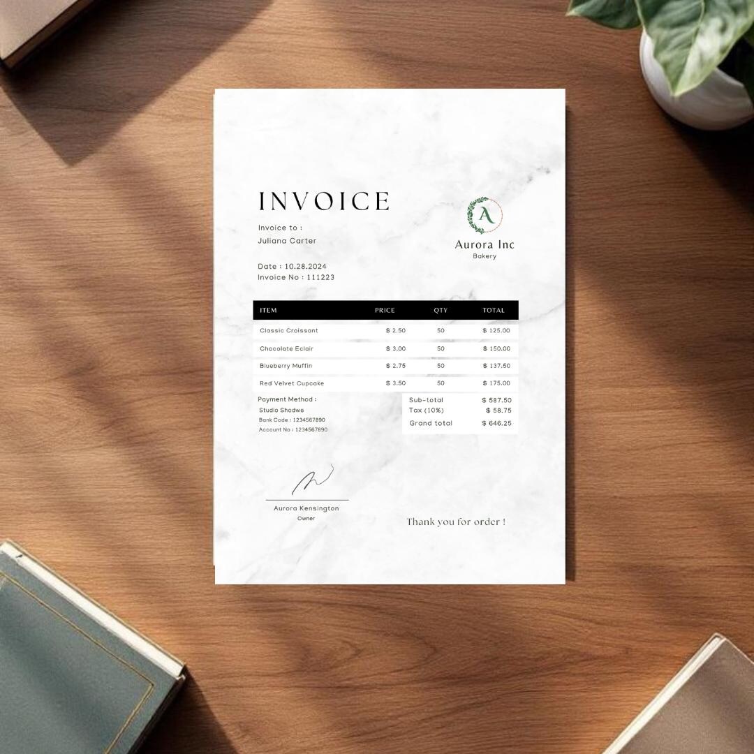 Luxury Marble Business Invoice Template, Minimalist Invoice, Modern ...