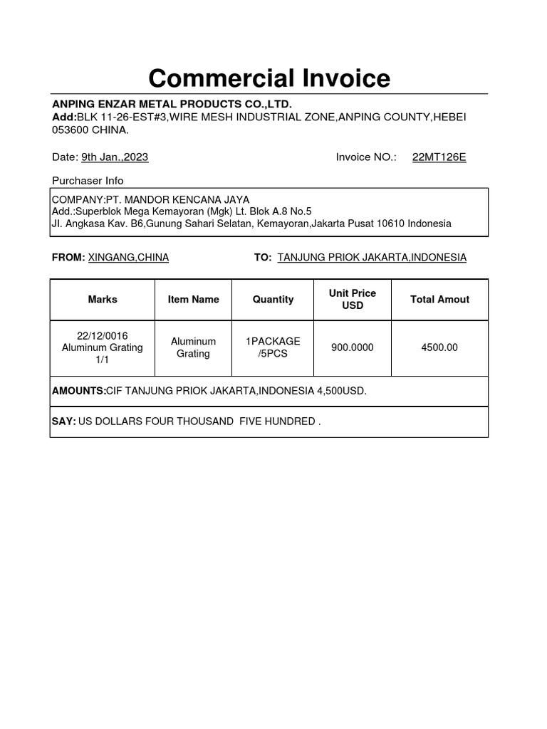 Invoice for Aluminum Grating | PDF
