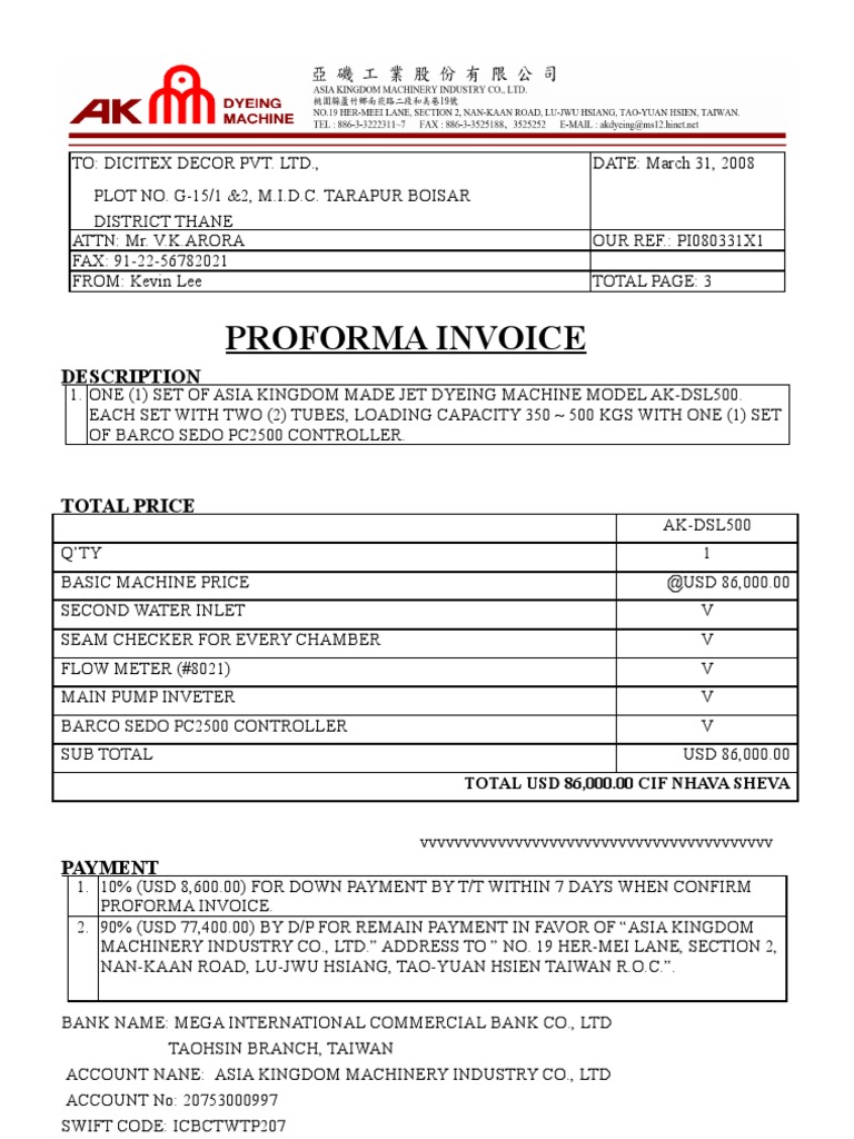 Proforma Invoice for Bakery Equipment | PDF | Humidity | Stainless Steel