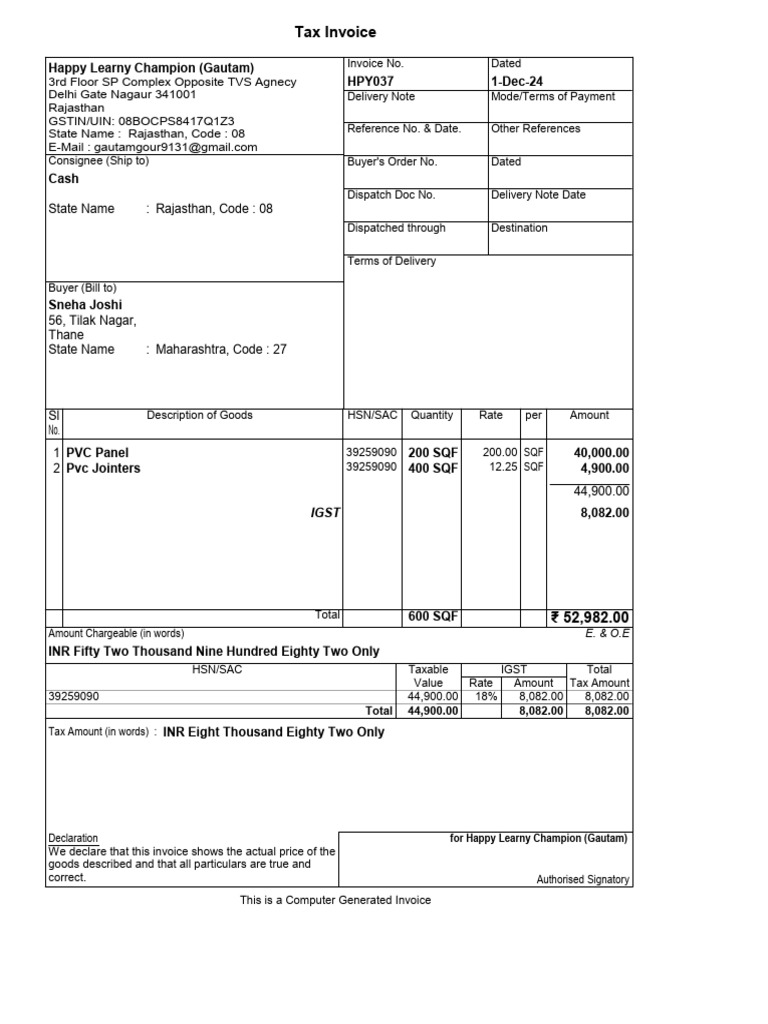 Invoice for PVC Products | PDF | Payments | Taxes