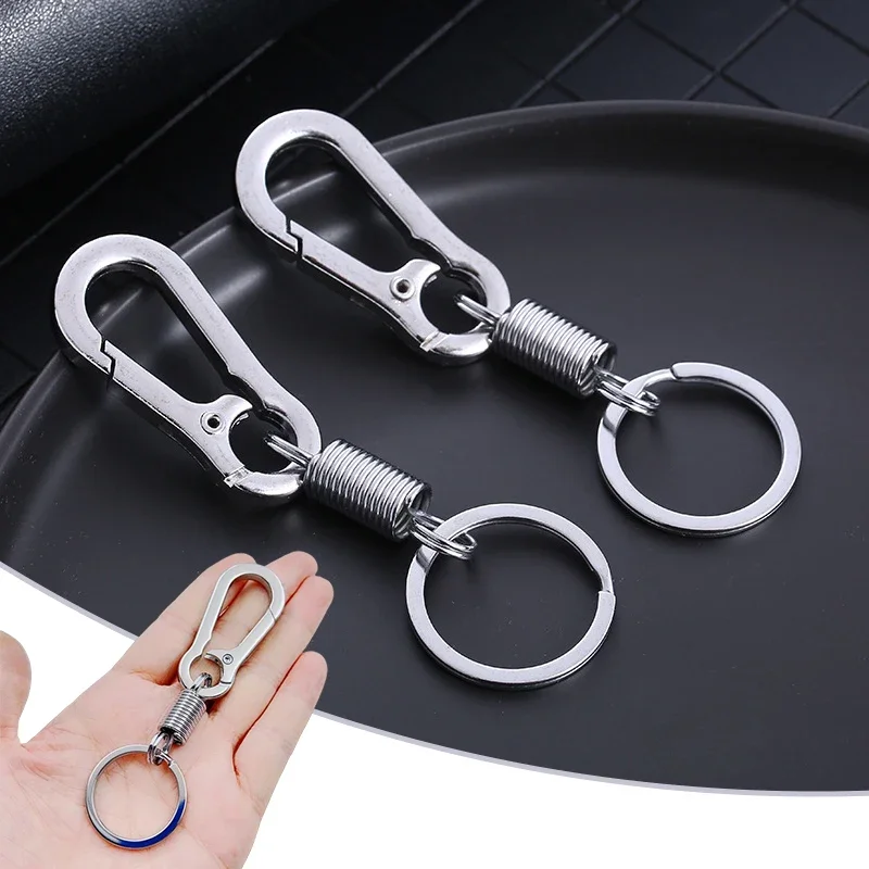 Spring Keychain for Men Stainless Steel Carabiner Buckle Key Rings Anti ...