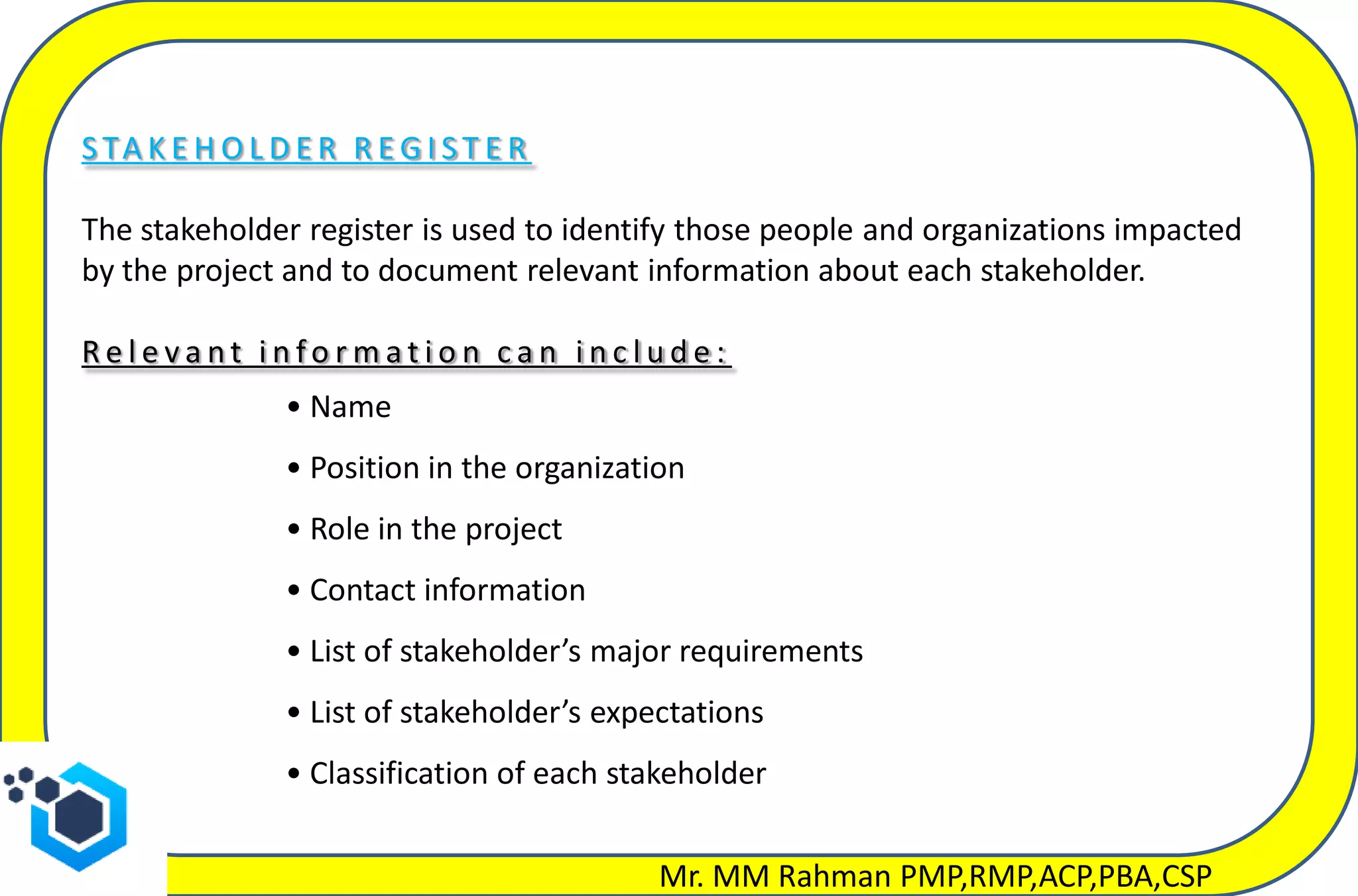 How to create the Stakeholder Register by MM Rahman | PDF