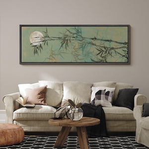 Framed Canvas Large Wall Art Abstract Green Bamboo Stalk Print Moon ...