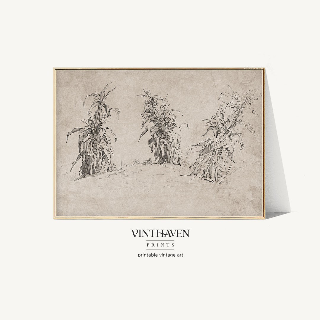 Textured Autumn Farmhouse Corn Stalks Print | Pencil Sketch | PRINTABLE ...
