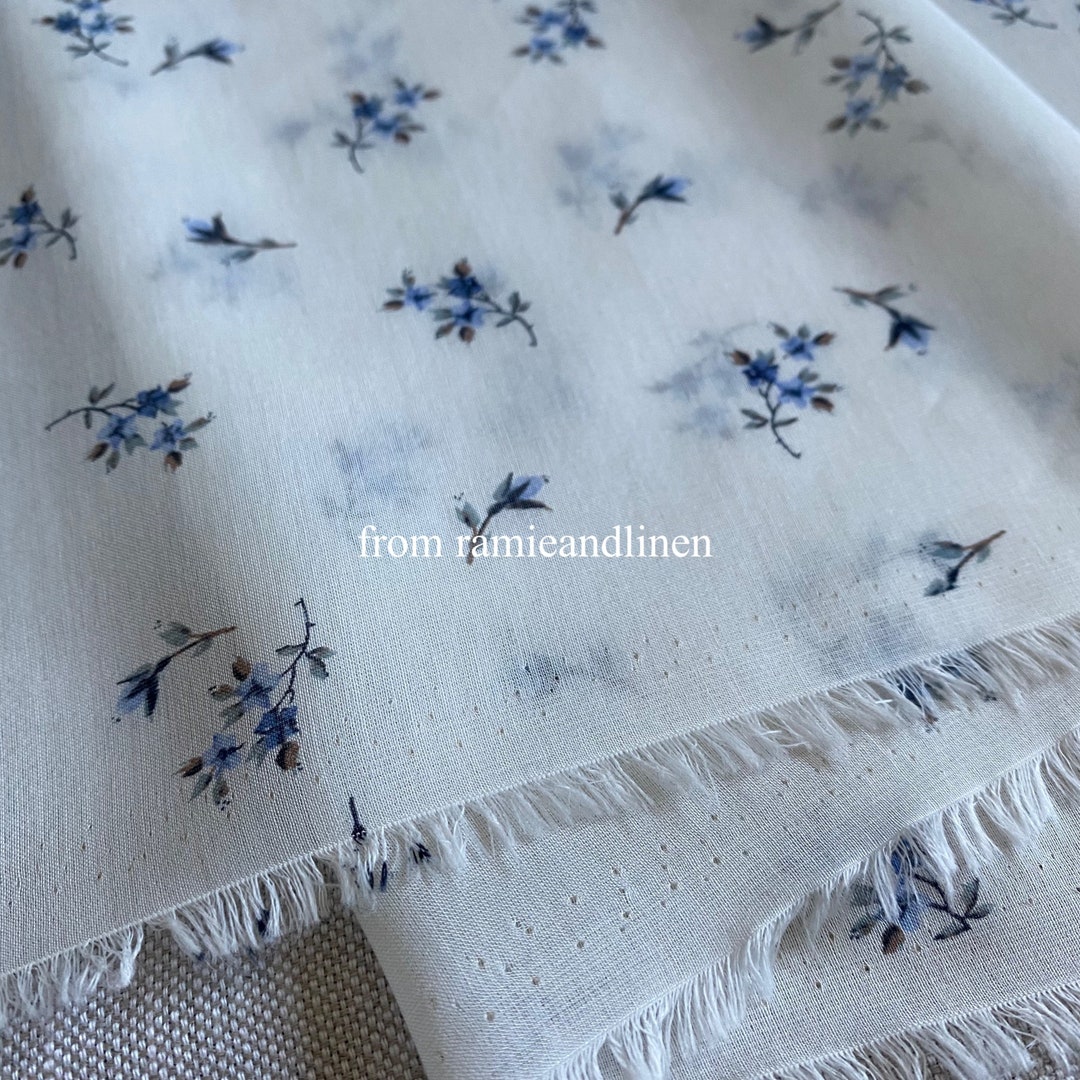 Silk Fabric, Blue Mini Flower Stalks Print, Silk Cotton Blend Fabric ...