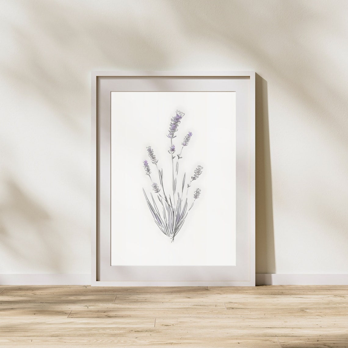 Lavender Stalks Print, Folk Botanical Art Home Decor #2083, Unframed ...