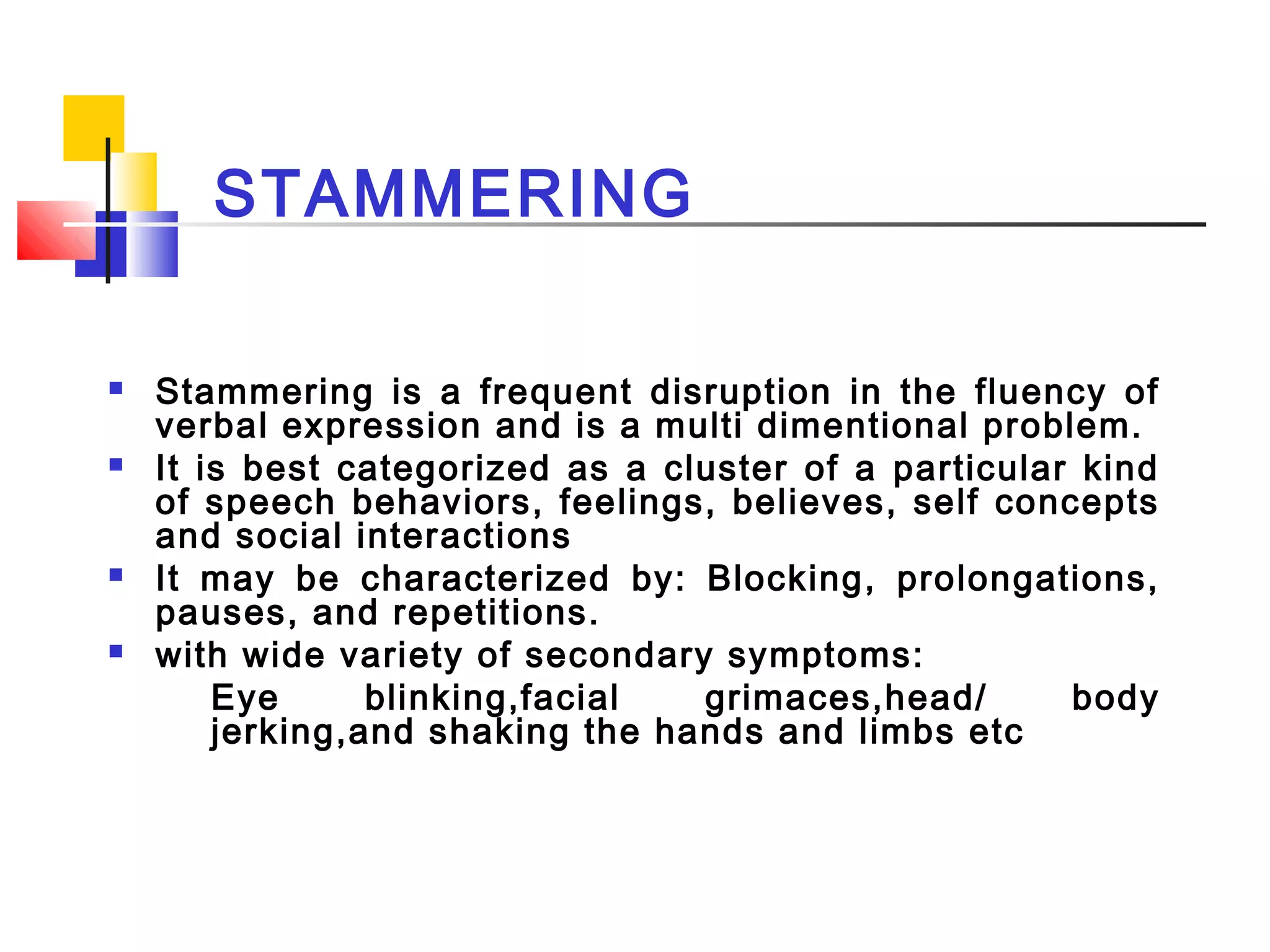 Fluency disorder (Stuttering also known as stammering) | PPTX