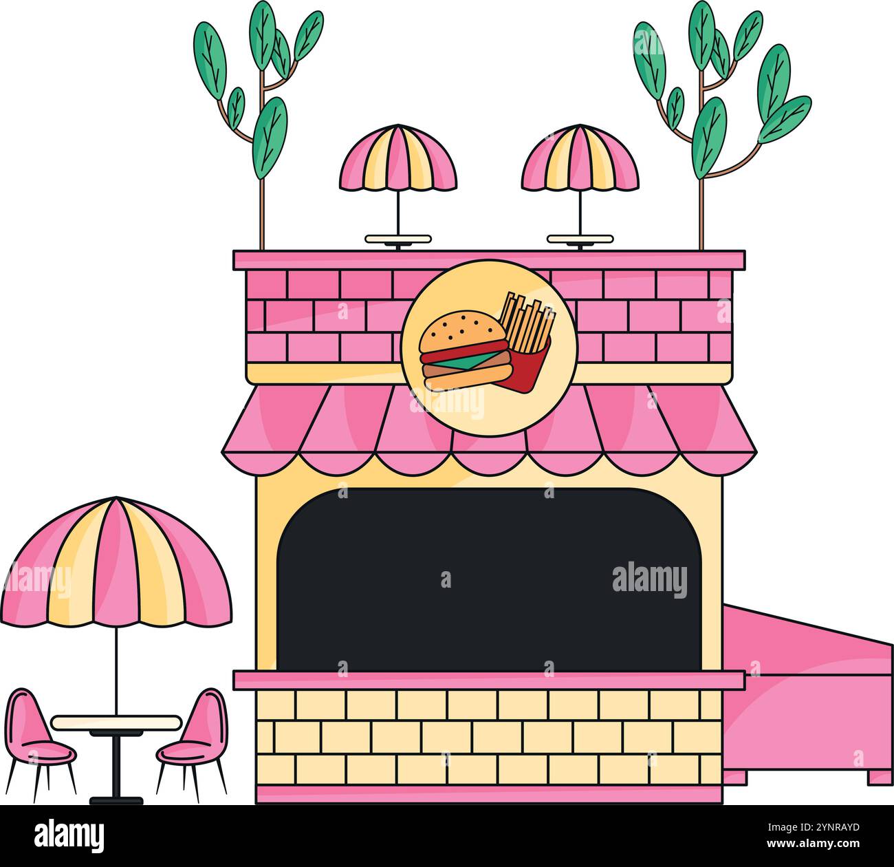 Fast food stand with outdoor umbrellas, Vector Stock Vector Image & Art ...