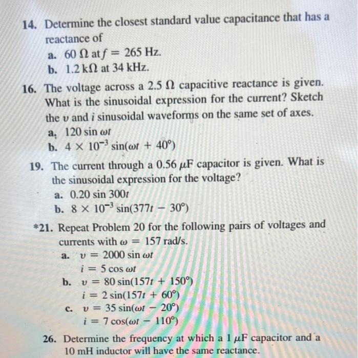 Solved 14. Determine the closest standard value capacitance | Chegg.com