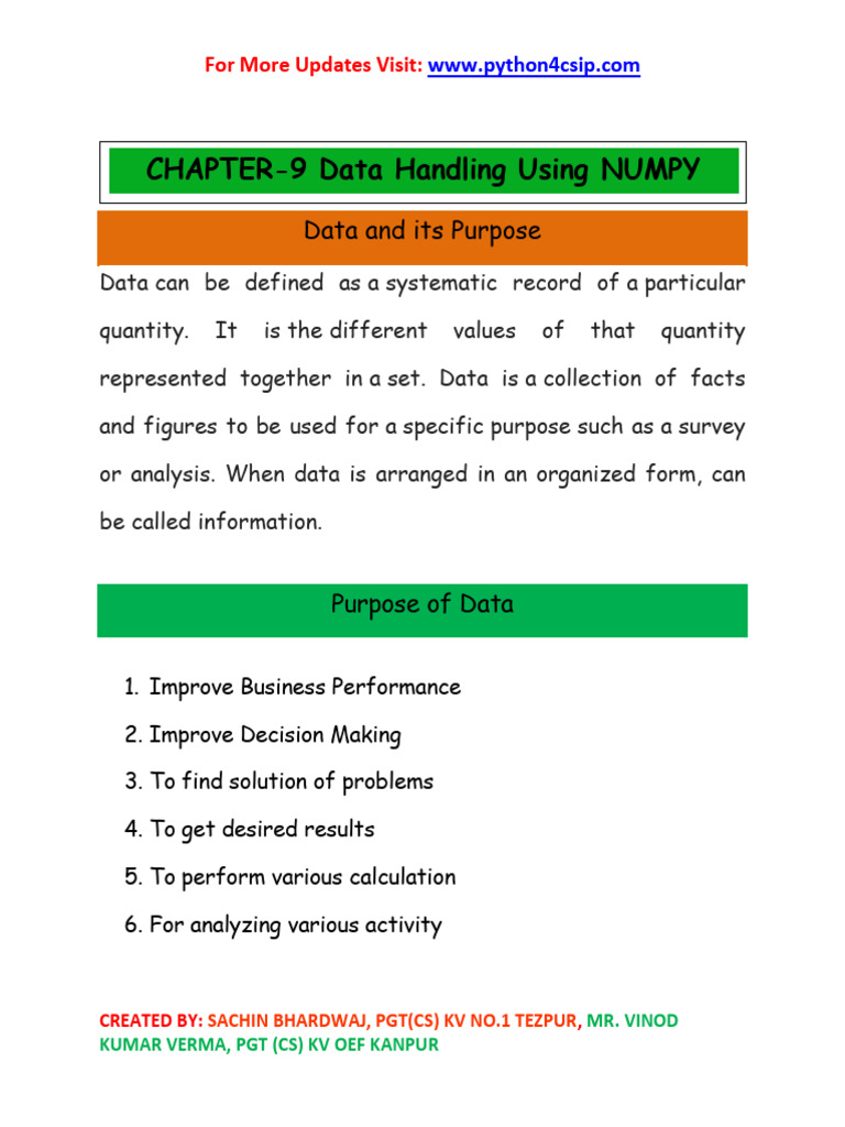 Data Handling Using NumPy | PDF | Standard Deviation | Mean