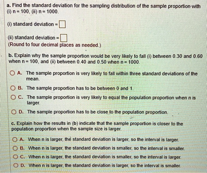 a. Find the standard deviation for the sampling distribution of the ...