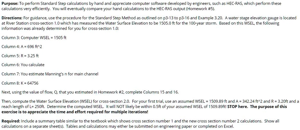 Solved HYDRAULIC MODELING: STANDARD STEP METHOD For the | Chegg.com