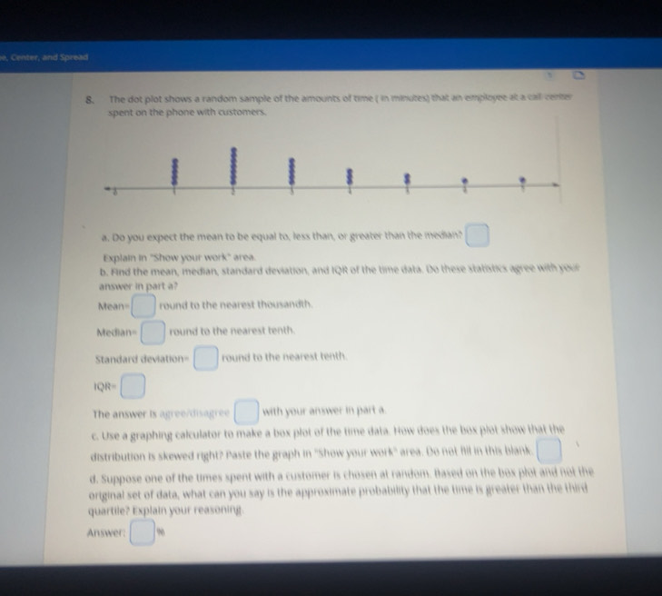 Solved: e, Center, and Spread 8. The dot plot shows a random sample of ...