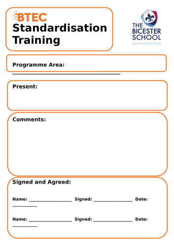 BTEC Standardisation meeting record sheet | Teaching Resources