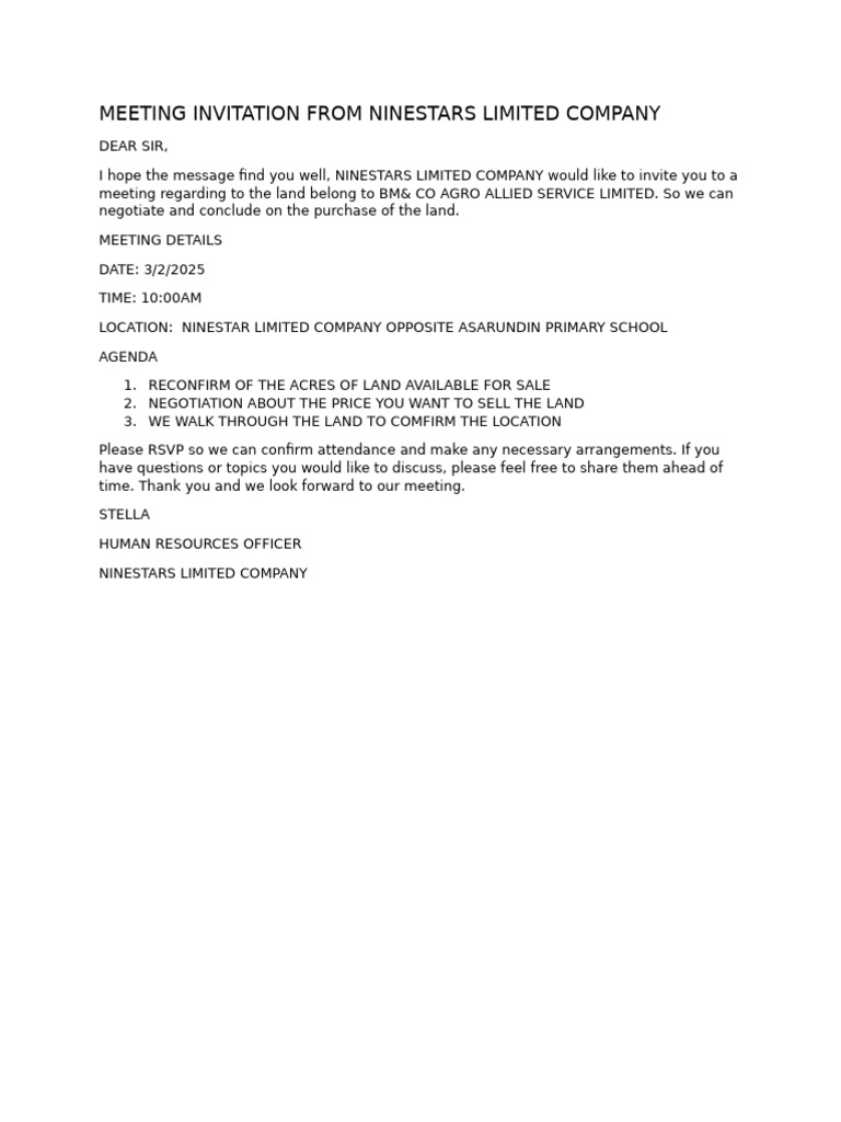 How To Write An Informal Meeting Invitation Letter With Agenda ...
