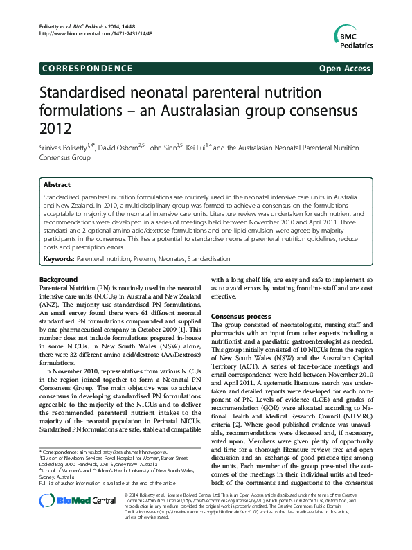 (PDF) Standardised neonatal parenteral nutrition formulations ...
