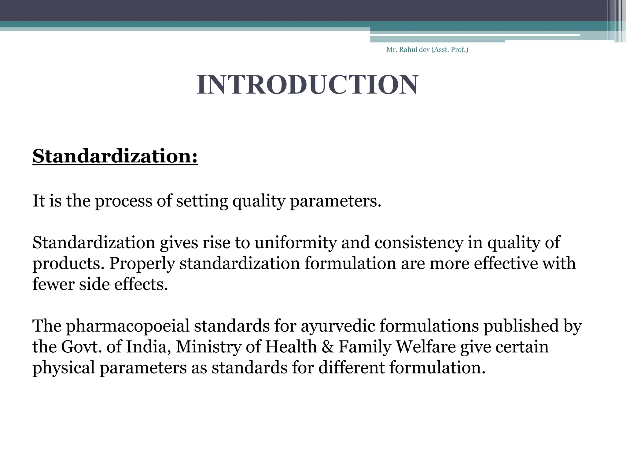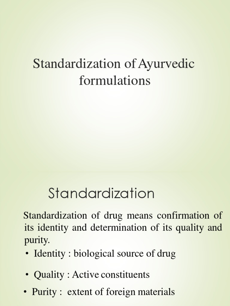 Standardization of ayurvedic formulation | PPTX