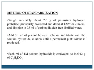 Preparation and standardization of various molar and normal solutions ...