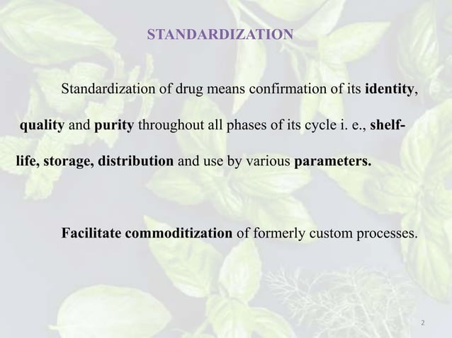 Standardization Herbal drug and Compound formulations/ | PPTX ...