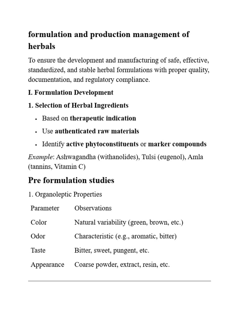 Formulation and Production Management of Herbals | PDF | Pharmaceutical ...