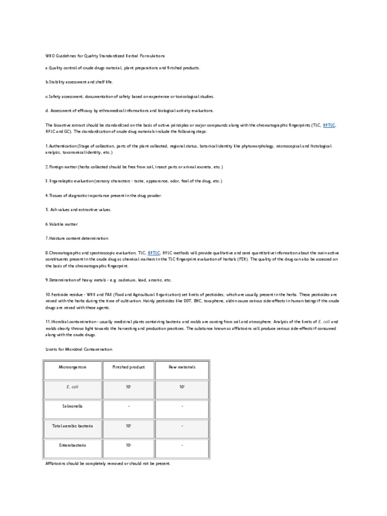 WHO Guidelines For Quality Standardized Herbal Formulations | PDF ...