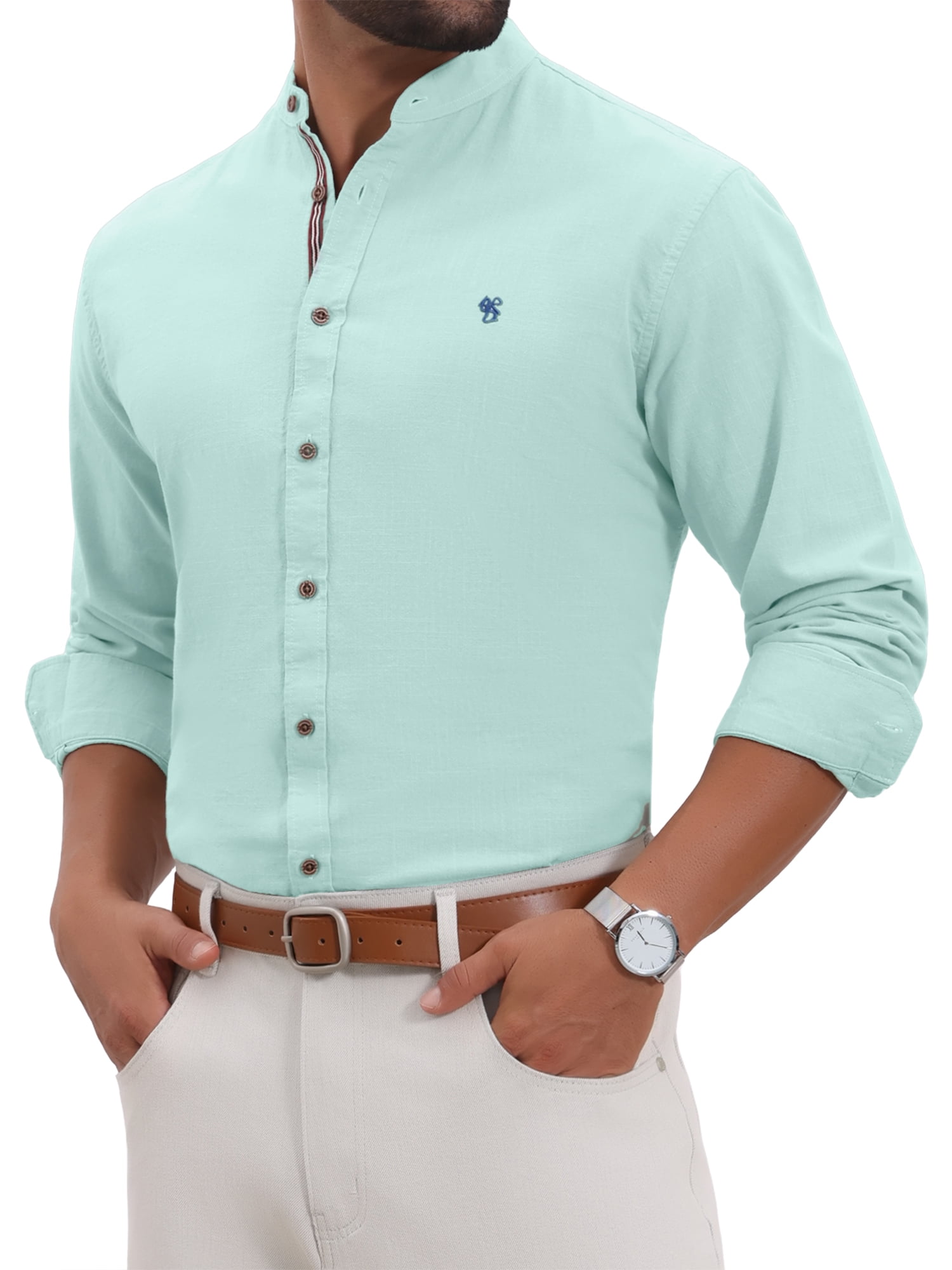 INSPIRE CHIC Outfit Men's Stand Collar Long Sleeves Button Down Solid ...