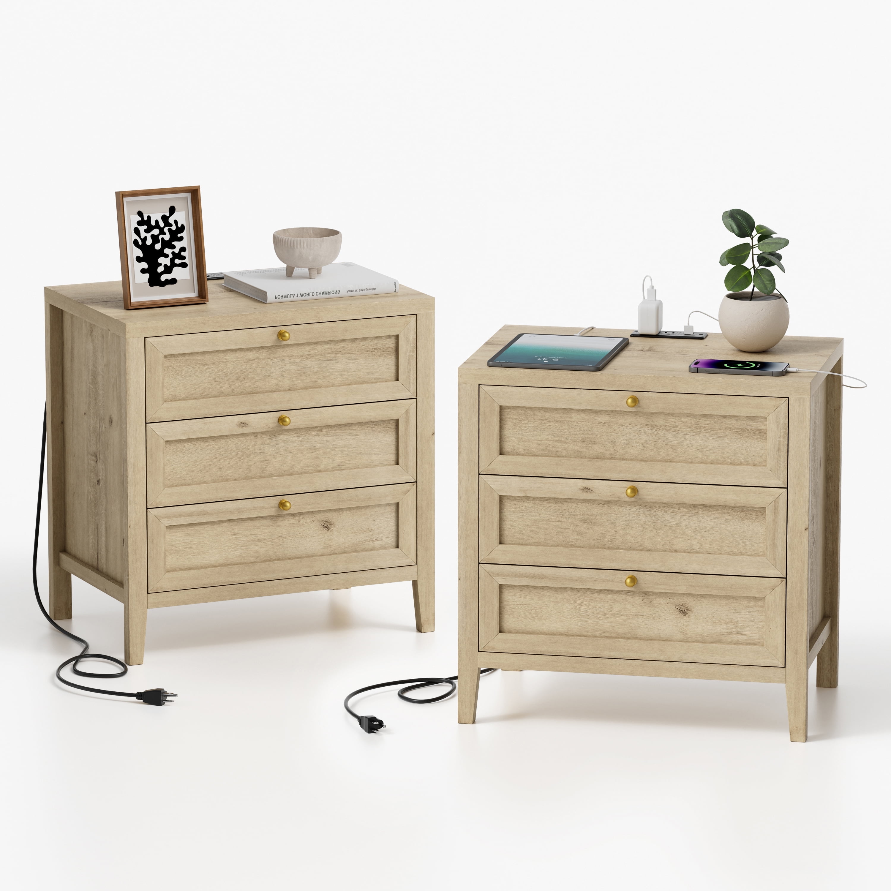 Farmhouse Nightstands Set of 2 with Charging Station & Ceramic Handle ...
