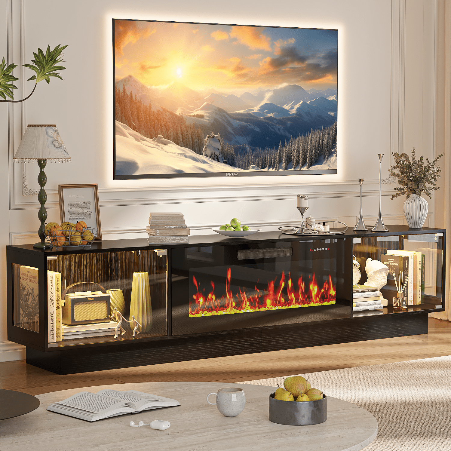 70 Inch TV Stand with Electric Fireplace, Modern High Gloss ...