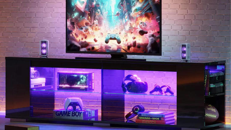 Modern LED TV Stand for Living Room – Fits up to 75" TVs, Storage ...