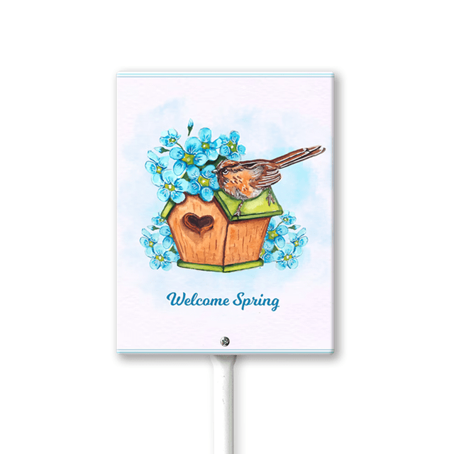 Eveokoki 7x8.8 Inches Welcome Spring Yard Sign with Stakes Spring Lawn ...