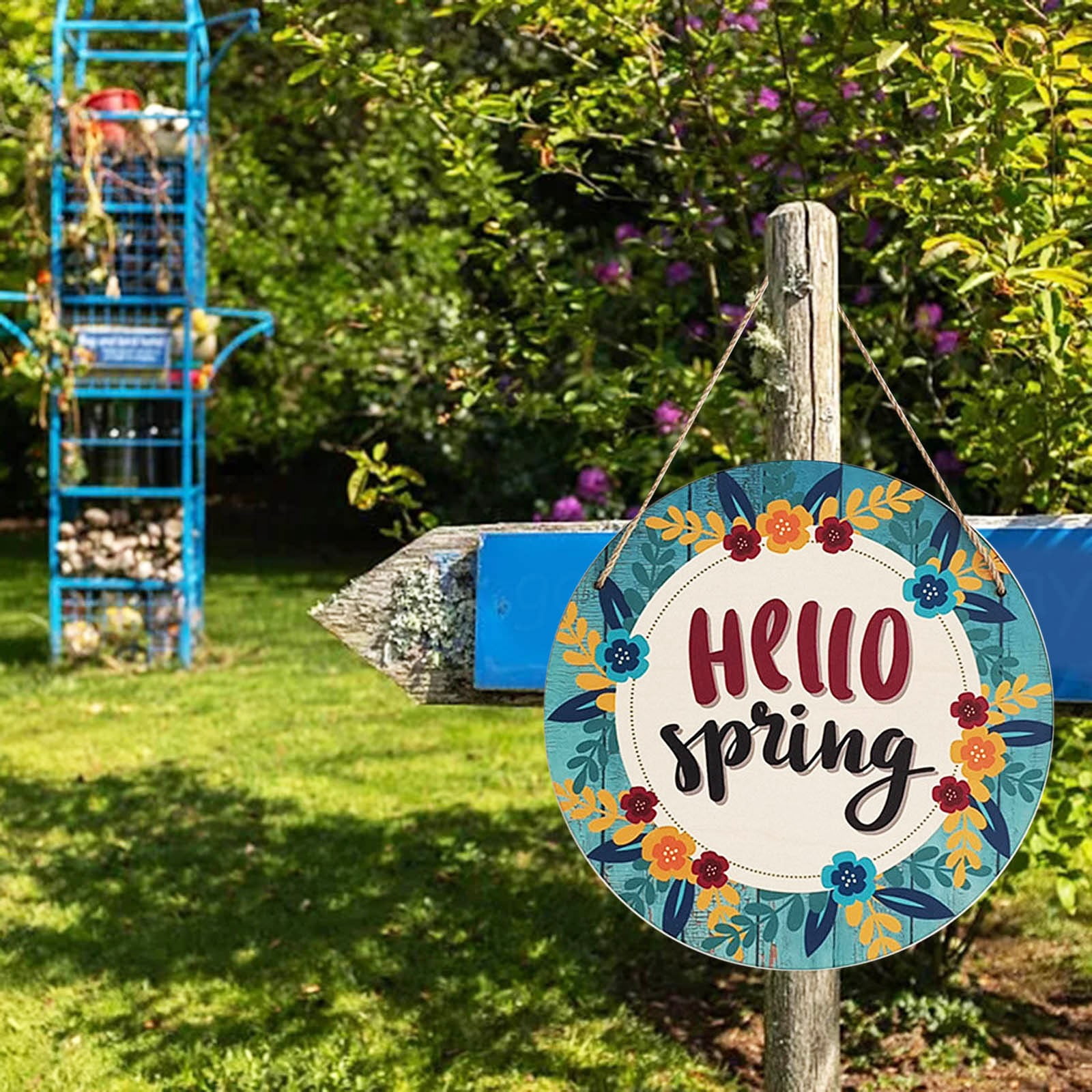 XDDST Spring Garden Wooden Hanging Sign Hello Spring Round Welcome Door ...