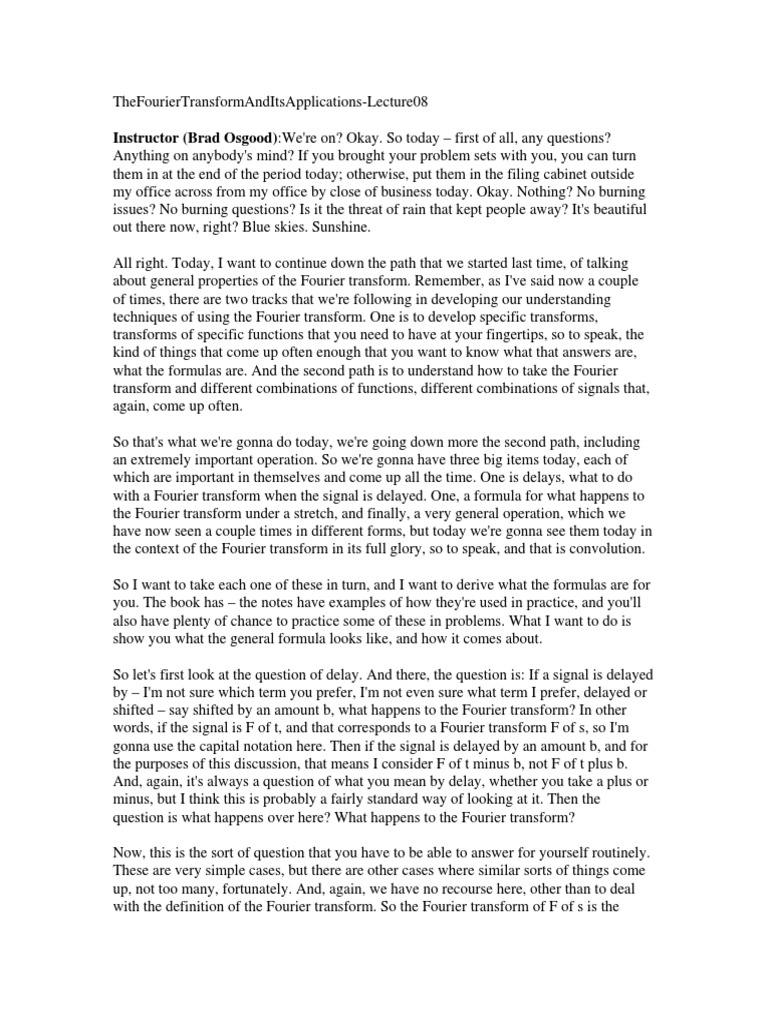 Fourier Transform Stanford Transcript | PDF | Fourier Transform ...