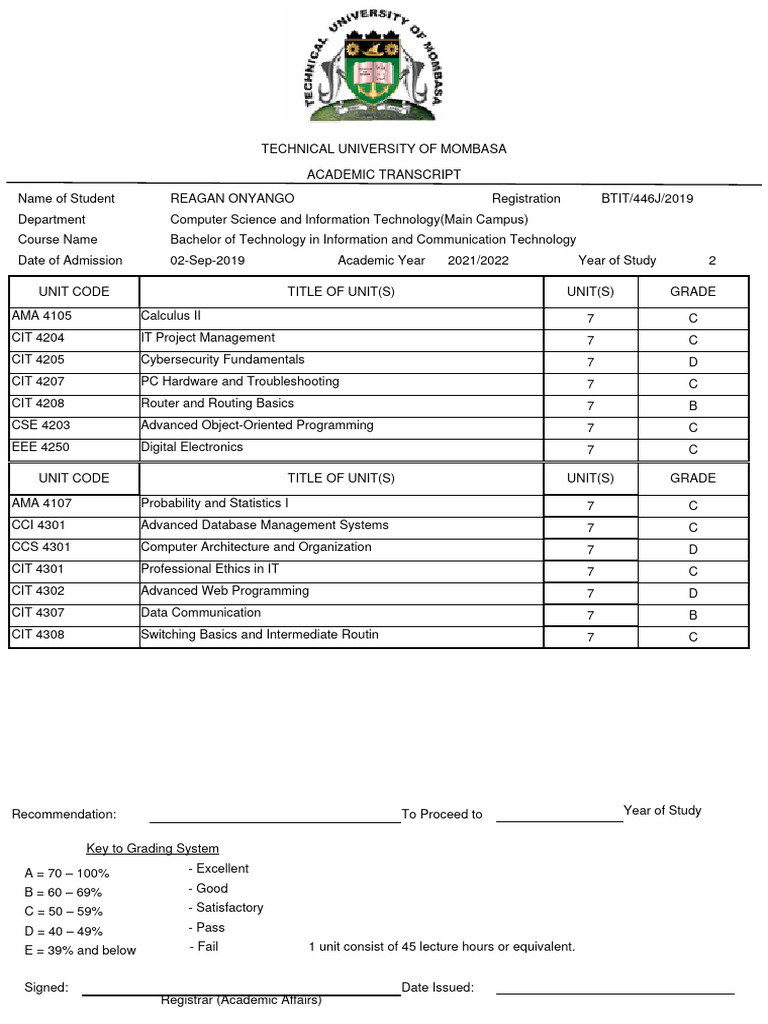 Paktia Univ. Computer Science Transcript | PDF | Course Credit | Databases