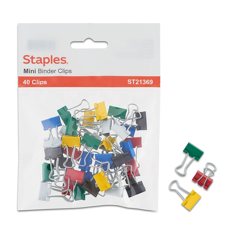 Staples Mini Binder Clips, 0.25" Capacity, Assorted Colors, 40 Clips ...