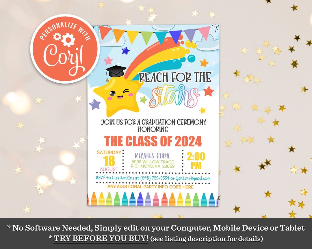 Reach for the Stars Graduation Invitation: Editable Party Invite ...