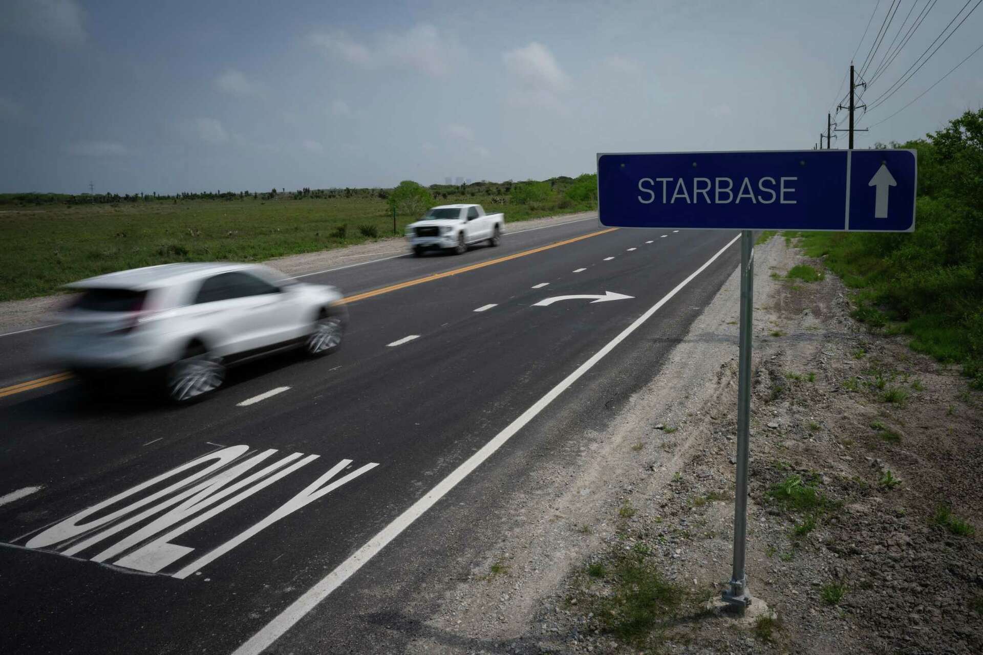 The sign at the SpaceX Starbase at Boca Chica near Brownsville, Texas ...