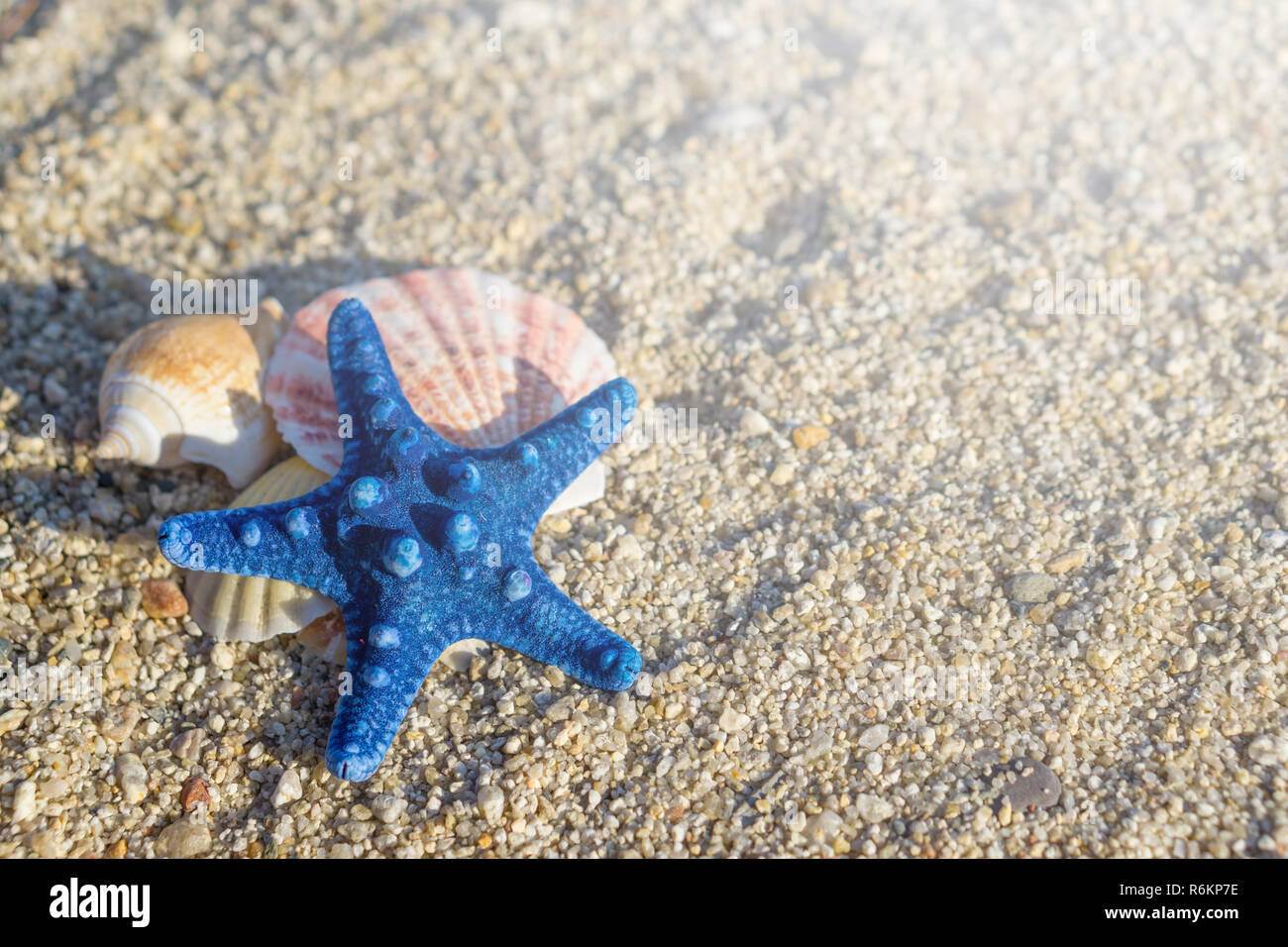 Starfish and seashell on the summer beach in sea water. Summer ...