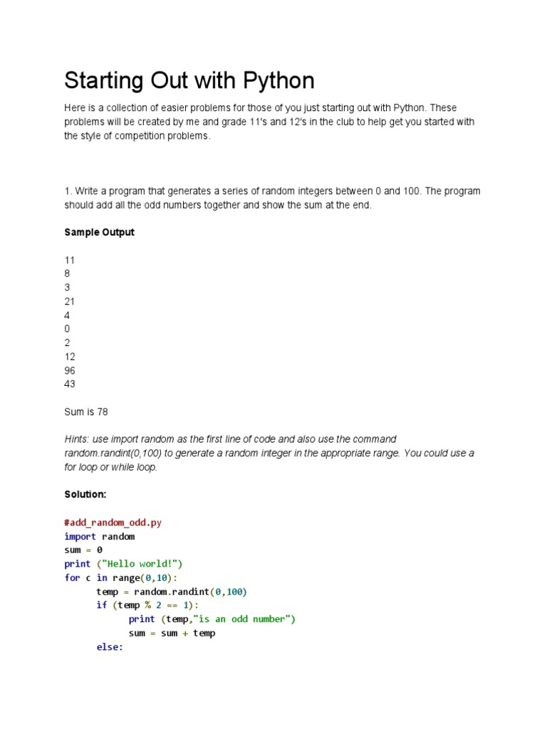 Starting Out with Python - Easy Problems to Get Started | PDF