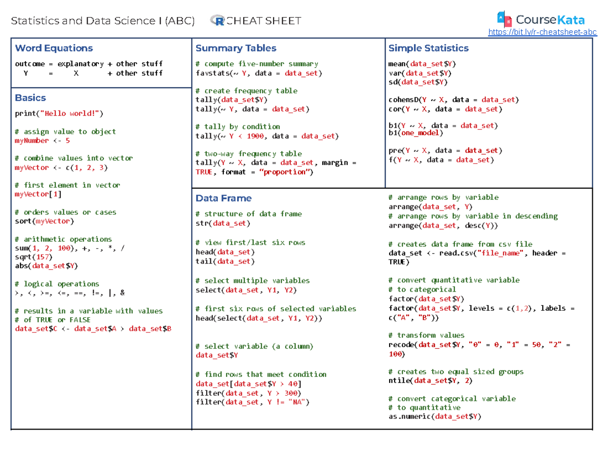 Statistics and Data Science I (ABC) Cheat Sheet - Studocu
